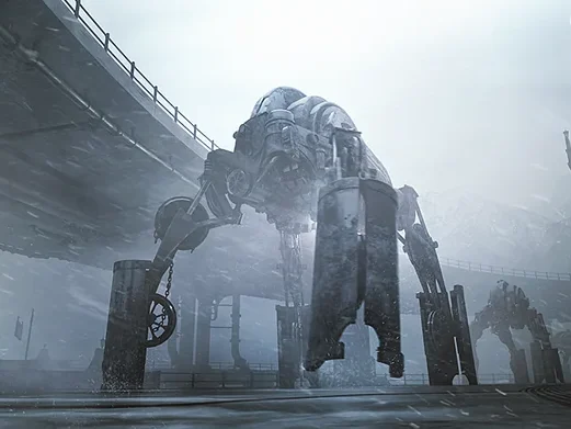 Concurrent with the invention of Steam Cores, and doubtless building upon the success of Babbage's project, the giant steam-powered robots known as Automatons were invented. These metal behemoths were born through the combination of complex clockwork mechanisms, the advanced computational engine, and the application of the Steam Core device. These huge machines, towering over people and structures, were the pinnacle of human engineering before the Great Frost and a massive boon to the British economy which propelled it to become the world’s first Superpower in the modern sense. Many other countries tried to make their own Automatons independently and even attempted to reverse-engineer them with mixed results, while others simply bought Automatons from the British.
